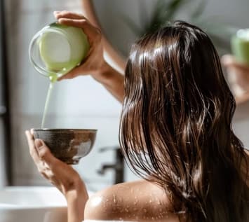 Mezcla una parte de vinagre de manzana con dos partes de agua y úsalo como enjuague después del shampoo. El vinagre de manzana ayuda a equilibrar el pH del cuero cabelludo y a controlar la producción de grasa.